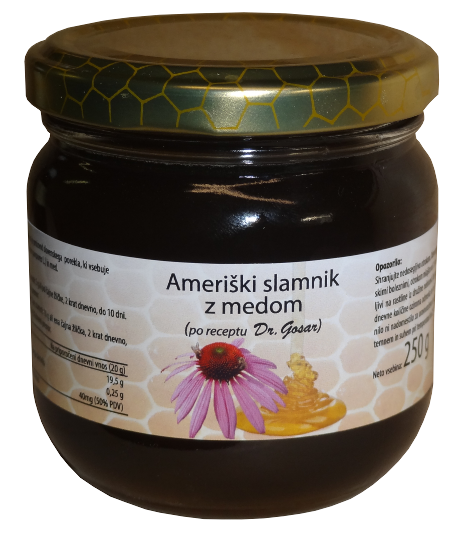 Ameriški slamnik je edina zdravilna rastlina, ki ima uradno priznane učinke za krepitev odpornosti organizma. Zato v lekarnah v EU zdravila za krepitev odpornosti organizma obstajajo samo iz te zdravilne rastline. Prednosti ameriškega slamnika z medom je, da njihova kombinacija blagodejno vpliva na odpravljanje simptomov (učinek medu) in zdravljenje (učinek ameriškega slamnika) prehlada ali gripe. Splošno znano je, da med zaradi svojih blagodejnih lastnosti, pomaga blažiti vneto grlo, ima pa tudi antioksidativne ter antibakterijske učinke. Na drugi strani pa ameriški slamnik s stimulacijo imunskih celic (imunske celice hitreje požirajo viruse in bakterije) krepi odpornost organizma, kar pomaga k hitrejšemu okrevanju. Ameriški slamnik z medom vsebuje dodan vitamin C. Primeren je tudi za otroke, saj ne vsebuje alkohola, konzervansov in je prijetnega okusa.